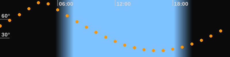 | Höchster Stand (Kulmination) | 04:23 Uhr (h = 88,8°) |