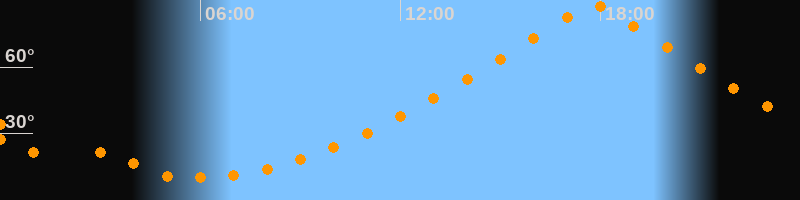 | Höchster Stand (Kulmination) | 17:46 Uhr (h = 88,8°) |