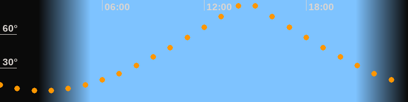 | Höchster Stand (Kulmination) | 14:30 Uhr (h = 88,8°) |