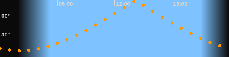 | Höchster Stand (Kulmination) | 14:10 Uhr (h = 88,8°) |