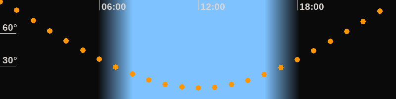 | Höchster Stand (Kulmination) | 00:00 Uhr (h = 88,8°) |