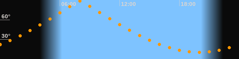 | Höchster Stand (Kulmination) | 08:01 Uhr (h = 88,8°) |