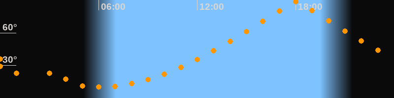 | Höchster Stand (Kulmination) | 18:01 Uhr (h = 88,8°) |