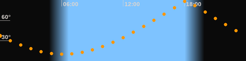 | Höchster Stand (Kulmination) | 18:09 Uhr (h = 88,8°) |