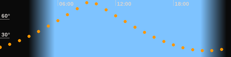 | Höchster Stand (Kulmination) | 09:25 Uhr (h = 88,8°) |