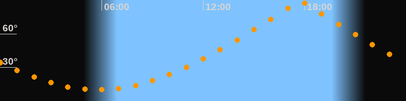 | Höchster Stand (Kulmination) | 17:45 Uhr (h = 88,8°) |
