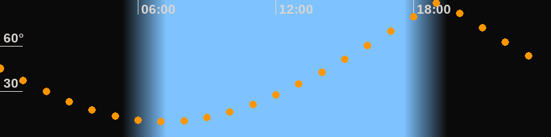 | Höchster Stand (Kulmination) | 19:07 Uhr (h = 88,8°) |