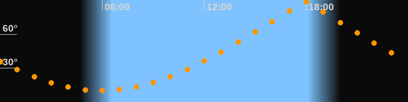 | Höchster Stand (Kulmination) | 17:57 Uhr (h = 88,8°) |