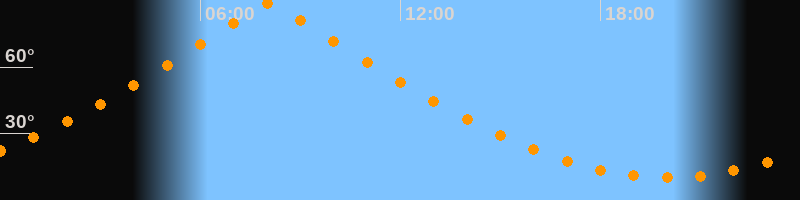 | Höchster Stand (Kulmination) | 08:04 Uhr (h = 88,8°) |
