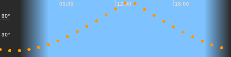 | Höchster Stand (Kulmination) | 13:27 Uhr (h = 88,8°) |