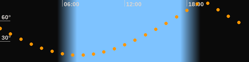 | Höchster Stand (Kulmination) | 19:33 Uhr (h = 88,8°) |