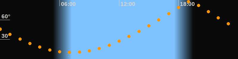 | Höchster Stand (Kulmination) | 19:10 Uhr (h = 88,8°) |
