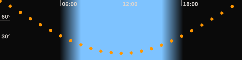 | Höchster Stand (Kulmination) | 23:59 Uhr (h = 88,8°) |