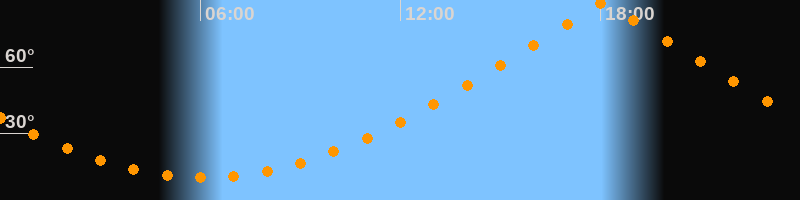 | Höchster Stand (Kulmination) | 18:05 Uhr (h = 88,8°) |