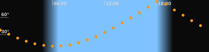 | Höchster Stand (Kulmination) | 18:14 Uhr (h = 88,8°) |