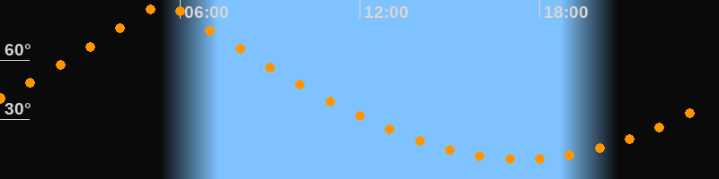 | Höchster Stand (Kulmination) | 05:26 Uhr (h = 88,8°) |