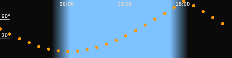 | Höchster Stand (Kulmination) | 19:08 Uhr (h = 88,8°) |