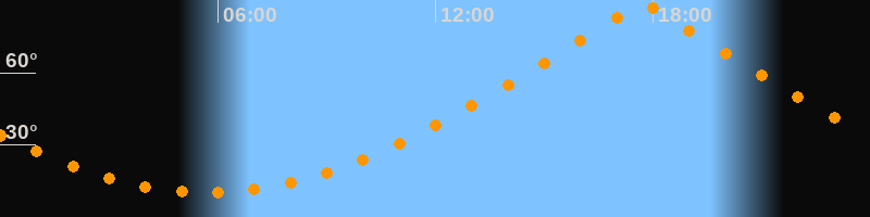 | Höchster Stand (Kulmination) | 17:43 Uhr (h = 88,8°) |
