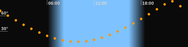 | Höchster Stand (Kulmination) | 21:48 Uhr (h = 88,8°) |