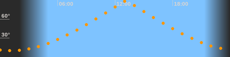 | Höchster Stand (Kulmination) | 13:06 Uhr (h = 88,8°) |