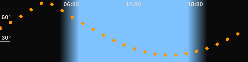 | Höchster Stand (Kulmination) | 04:25 Uhr (h = 88,8°) |