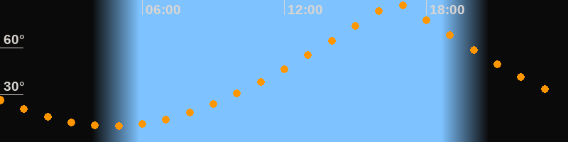 | Höchster Stand (Kulmination) | 16:41 Uhr (h = 88,8°) |