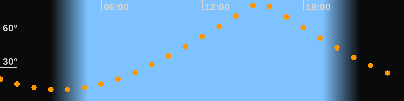 | Höchster Stand (Kulmination) | 15:26 Uhr (h = 88,8°) |