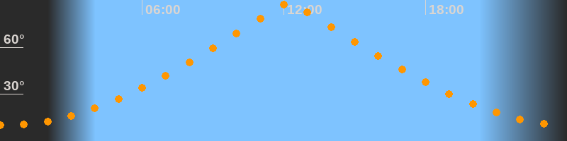 | Höchster Stand (Kulmination) | 12:13 Uhr (h = 88,8°) |