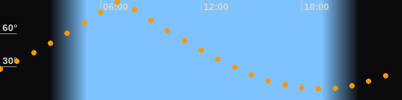 | Höchster Stand (Kulmination) | 07:06 Uhr (h = 88,8°) |