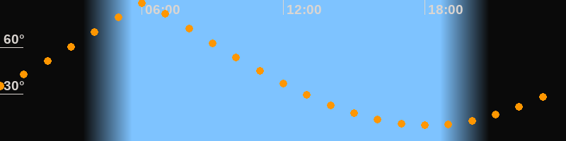 | Höchster Stand (Kulmination) | 06:07 Uhr (h = 88,8°) |