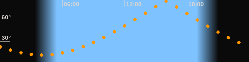 | Höchster Stand (Kulmination) | 15:58 Uhr (h = 88,8°) |