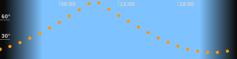 | Höchster Stand (Kulmination) | 09:33 Uhr (h = 88,8°) |