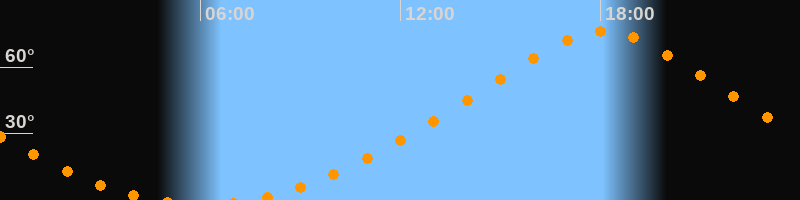 | Höchster Stand (Kulmination) | 18:04 Uhr (h = 76,3°) |