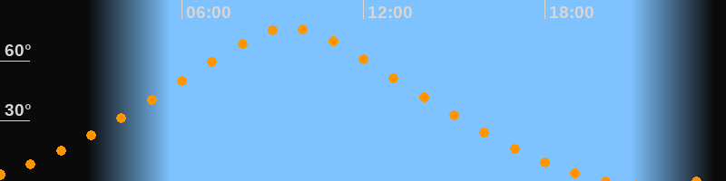 | Höchster Stand (Kulmination) | 09:34 Uhr (h = 76,3°) |