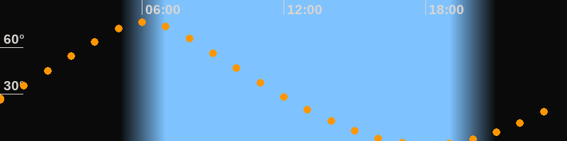 | Höchster Stand (Kulmination) | 06:06 Uhr (h = 76,3°) |