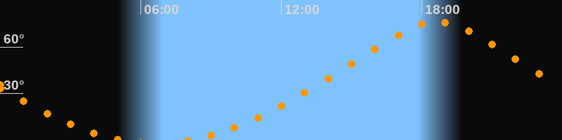 | Höchster Stand (Kulmination) | 18:39 Uhr (h = 76,3°) |