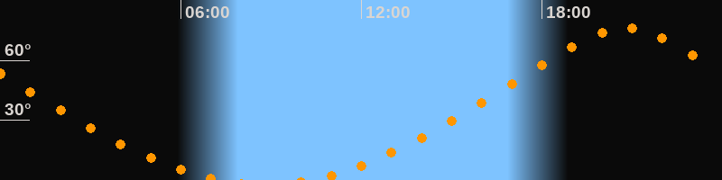 | Aufgang | 10:06 Uhr im Norden (αAz = 15,6°) |