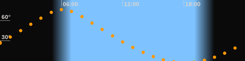 | Höchster Stand (Kulmination) | 06:06 Uhr (h = 76,3°) |