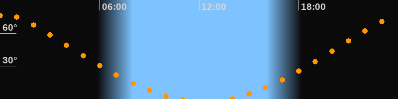| Aufgang | 13:35 Uhr im Norden (αAz = 15,6°) |