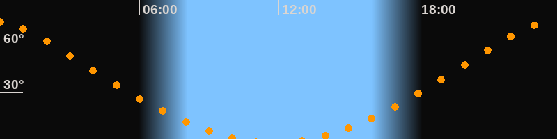 | Untergang | 10:30 Uhr im Norden (αAz = 344,4°) |