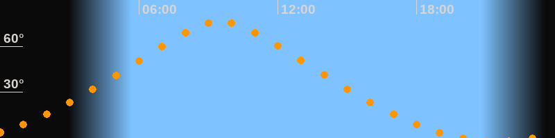| Höchster Stand (Kulmination) | 09:30 Uhr (h = 76,3°) |