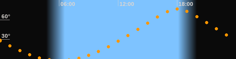 | Höchster Stand (Kulmination) | 18:02 Uhr (h = 76,3°) |