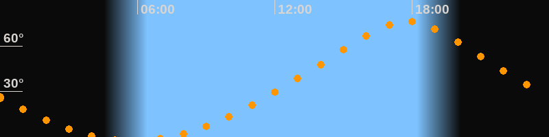| Höchster Stand (Kulmination) | 17:46 Uhr (h = 76,3°) |