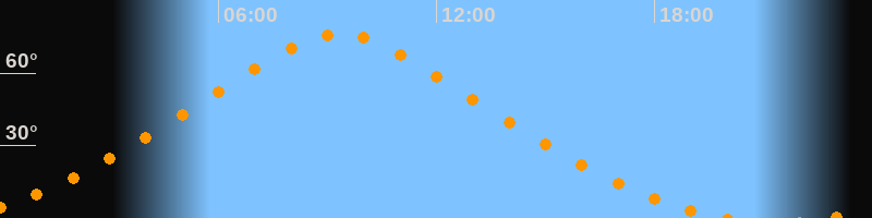 | Höchster Stand (Kulmination) | 09:20 Uhr (h = 76,3°) |