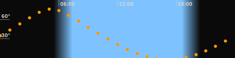 | Aufgang | 18:29 Uhr im Norden (αAz = 15,6°) |