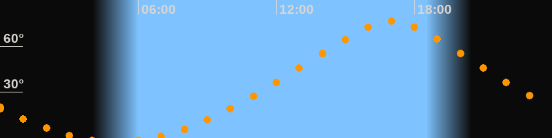 | Höchster Stand (Kulmination) | 17:00 Uhr (h = 76,3°) |