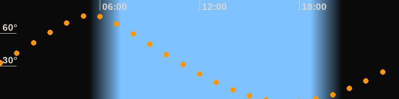 | Höchster Stand (Kulmination) | 05:25 Uhr (h = 76,3°) |