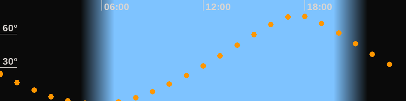 | Höchster Stand (Kulmination) | 17:34 Uhr (h = 76,3°) |