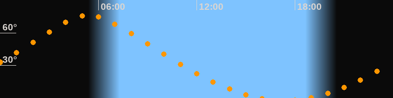 | Höchster Stand (Kulmination) | 05:24 Uhr (h = 76,3°) |