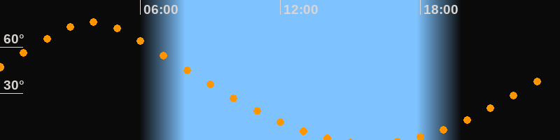 | Aufgang | 17:11 Uhr im Norden (αAz = 15,6°) |